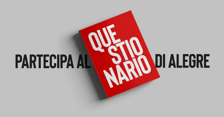 Partecipa al questionario di Alegre e dicci in che direzione vorresti che andasse il nostro lavoro editoriale. Poche semplici domande in cui potrai raccontarci cosa ti piace, come ci hai conosciuto e quali libri del nostro catalogo ti sono piaciuti di più.